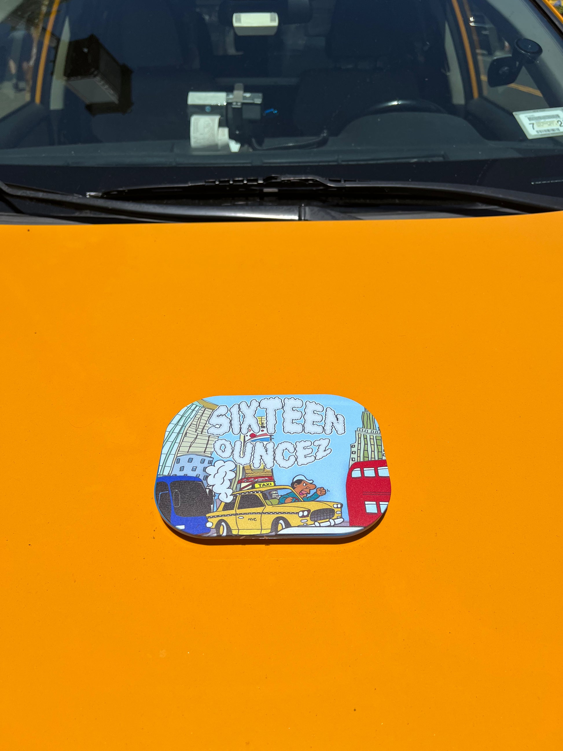 - Strong Durable Tin Tray SIXTEEN OUNCEZ "NYC TAXI SMOKE' Design, with Curved Edges and Magnetic lid, So You Never Spill the Good Stuff!